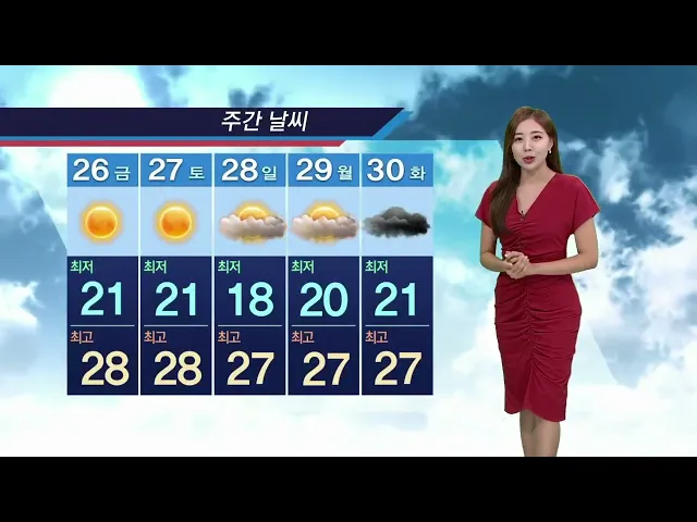 [아침 선선, 한낮 다소 더워... 구름 많음] 찬 공기가 조금씩 유입되면서 더위가 한결 누그러졌습니다. 오늘 아침 최저기온 19도를 기록하면서 선선한데요. 한낮 최고기온은 28도로 예상돼 낮에는 다소 더울 수 있겠습니다. 입고 벗기 쉬운 얇은 외투 챙겨주시는 게 좋겠습니다. 뚜렷한 비 소식 없이 오늘은 구름만 많이 지...