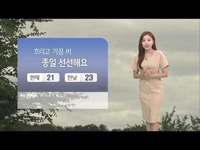 [오늘 낮까지 5mm 비... 낮 최고 23도로 '선선'] 현재 우리 지역에는 약하게 빗방울이 떨어지는 곳이 있습니다. 오늘 낮까지 비는 조금 더 이어질 텐데요. 양은 5mm 안팎으로 적겠습니다. 비가 내려 도로가 미끄러운 곳이 있으니까요. 출근길 교통안전에 유의하시기 바랍니다. 오늘은 흐리고 가끔 비가 오면서 기온이 오르...