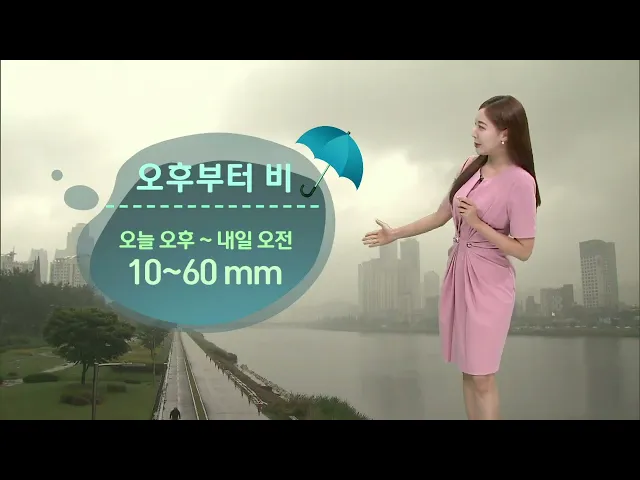 [오후부터 비, 내일 오전까지 10~60mm... 낮더위 주춤] 오늘은 비 소식이 있습니다. 정체전선에서 발달한 저기압의 영향으로 현재 빗방울이 떨어지는 곳이 있고요. 본격적인 비는 오후부터 시작되겠습니다. 비는 내일 오전까지도 가끔씩 이어지겠습니다. 예상되는 비의 양을 보시면 10~60mm 정도입니다. 우산 챙겨 나오시기...