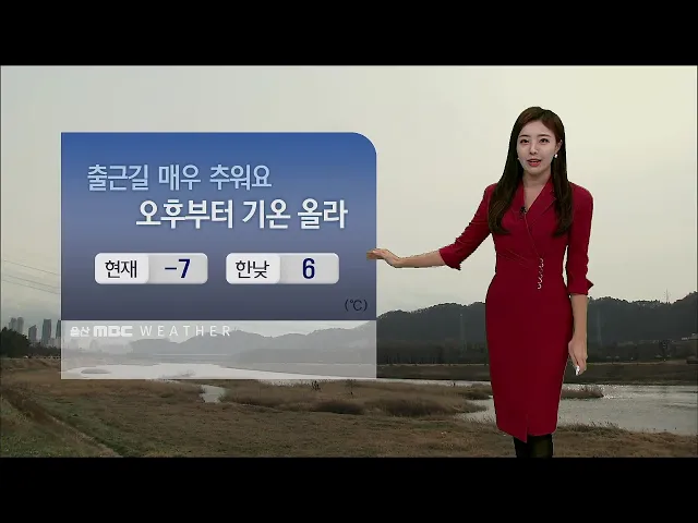 [영하 7도 강추위, 오후 기온 올라... 건조주의보] 1) 금요일 아침 출근길 매우 춥습니다. 울산의 현재 기온 -7도로 강력한 한파가 나타나고 있어서 나오실 때 옷장에서 가장 두꺼운 옷 꺼내 입으셔야겠습니다. 이렇게 강추위는 오전까지 이어지고요. 오늘 오후부터는 추위가 풀리면서 낮 기온은 6도로 예상됩니다. 2) 뚜렷...