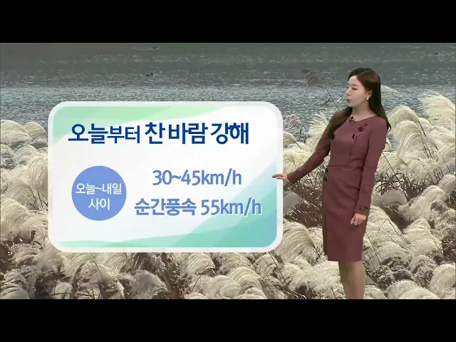[한낮 2도, 기온 뚝... 강풍 유의] 1) 오늘은 어제보다 기온이 급격하게 낮아지겠습니다. 북쪽에서 남하하는 찬 공기로 인해 오늘 낮 기온은 2도에 그치며 매우 낮겠는데요. 아침 기온보다 더 낮아지겠고, 어제보다 9도나 낮은 기온이 예상됩니다. 여기에 바람도 강하게 불어 체감온도는 더욱 낮아 춥겠습니다. 옷 따뜻하게...
