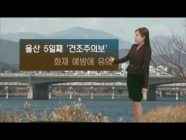 [울산 건조주의보... 주말 동안 맑고 일교차 커]1) 잠시 주춤하던 추위는 오늘 다시 이어집니다. 금요일인 오늘 맑은 하늘이 예상되는 가운데, 현재 기온 6도, 한낮 기온 12도로 어제보다 기온이 낮아지겠습니다. 건조주의보가 발효 중인 울산은 당분간 대기가 매우 건조하니까요. 화재사고 발생하지 않도록 불씨관리 잘 해...