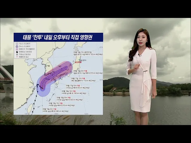 [태풍 '찬투', 강풍과 함께 강하고 많은 비.. 저녁까지 30~80mm]1) 태풍 '찬투'는 서귀포 남남서쪽 약 110km 부근 해상에서 북상중입니다. 태풍의 이동속도가 빨라지면서 오늘 오후에는 남해상을 지나 저녁에는 대한 해협을 통과하겠습니다. 2) 울산에는 현재 태풍 예비특보가 발표된 가운데, 낮부터는 태풍주의보가 발효되...