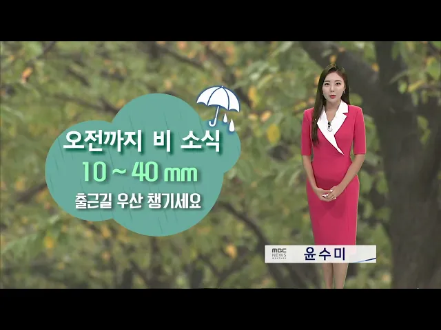 [축축한 가을비 이어져요.. 내일 오전까지 20~70mm]1) 오늘은 축축한 가을비 소식이 있습니다. 서해상에서 다가오는 저기압의 영향으로 오늘부터 내일 오전까지 20~70mm가량의 비가 내리겠습니다. 나오실 때 우산 챙겨주셔야겠습니다.2) 특히 오늘 오후부터 내일 새벽 사이에는 천둥. 번개를 동반한 시간당 20~30mm의 강한 ...