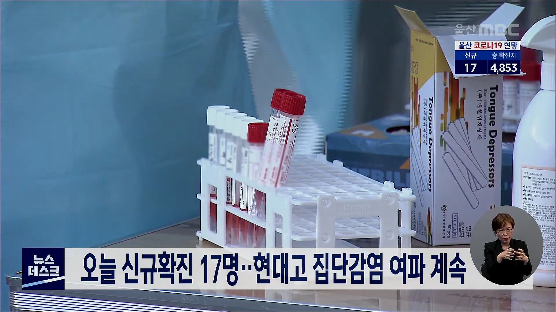 오늘(9/16) 울산에서는 코로나19 신규 확진자가 17명 발생했습니다. 2명은 현대고등학교 축구부 집단감염 관련 확진자이며, 12명은 기존 확진자를 접촉했다가 감염된 것으로 파악됐습니다. 나머지 3명은 감염 경로를 조사중입니다. 현재까지 울산지역의 코로나19 누적 확진자는 모두 4천 853명입니다.//