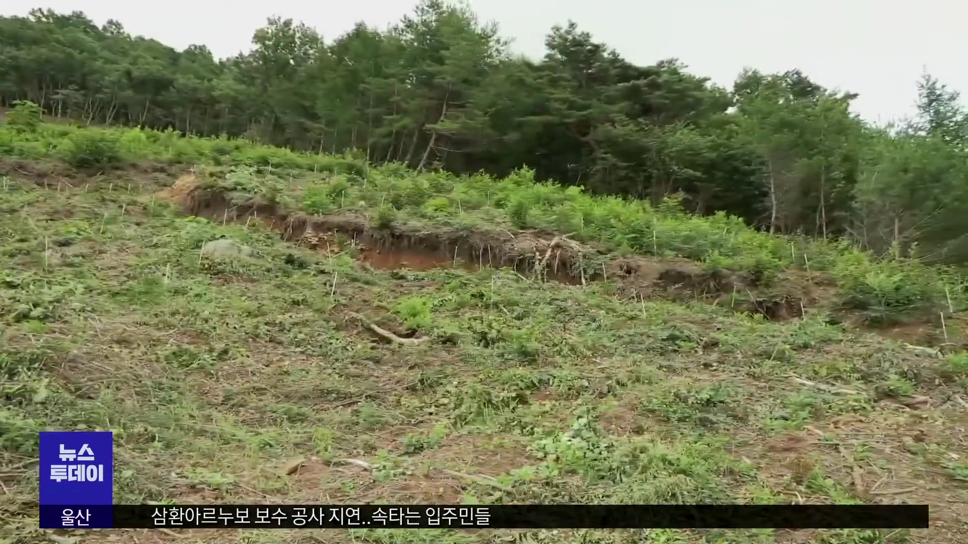 ◀ANC▶ 산사태와 달리 물이 차 올라 약해진 지반이 넓은 면적에 걸쳐 무너져 내리는 걸 땅밀림 현상이라고 하는데요, 산사태보다 인명과 재산 피해가 더 클 수 있지만 그동안은 딱히 관리 기준이 없어 우려가 컸는데 산림청이 오는 2024년까지 전국 땅밀림 위험지도를 만드는 등 대책 마련에 나섰습니다. 김태욱 기자입...