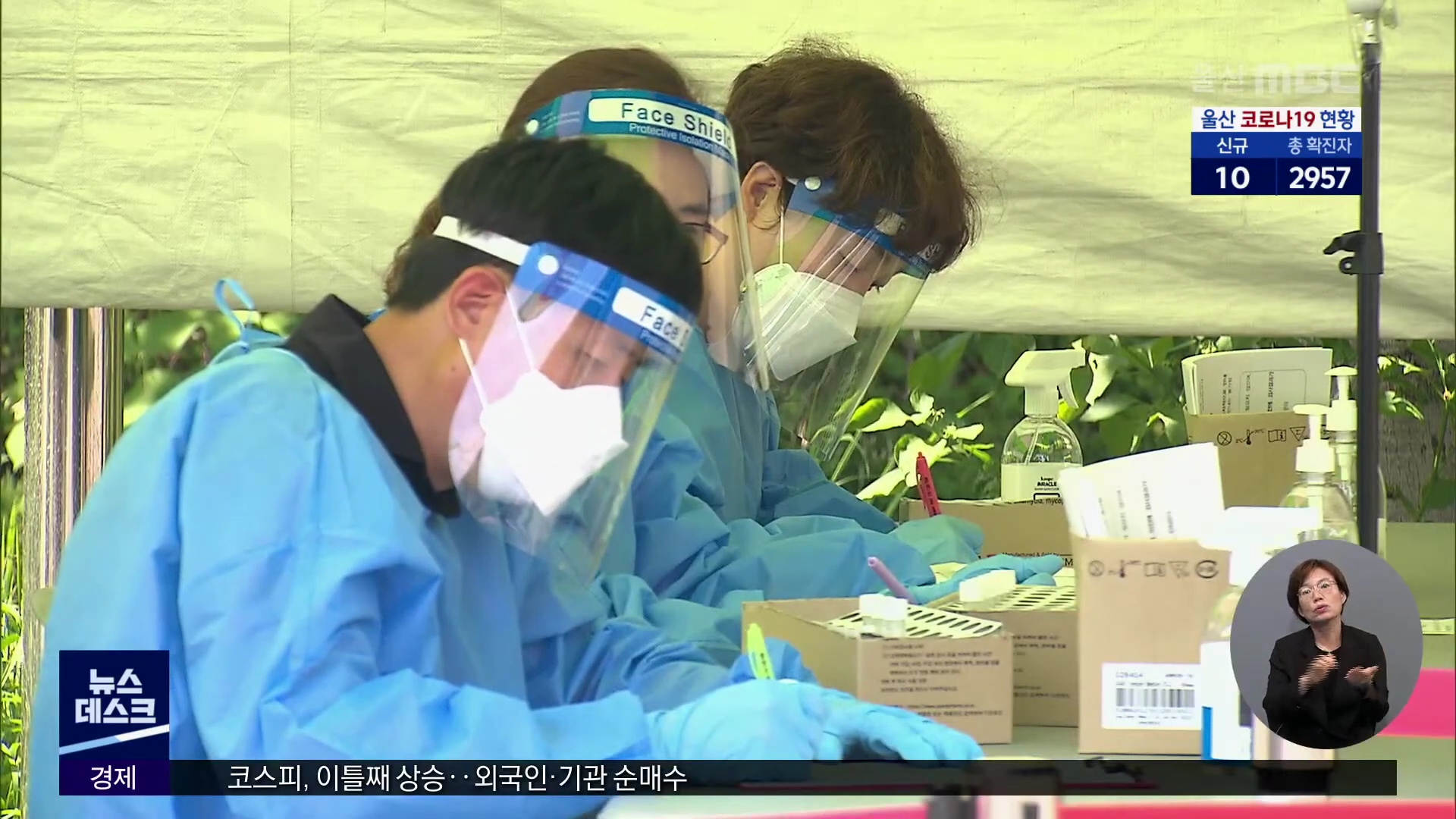 오늘(7/13) 울산에서는 코로나 확진자가 10명 발생했습니다. 3명은 가존 확진자의 접촉자며 7명은 감염경로를 조사하고 있습니다. 울산시는 신규 확진자의 주거지를 방역하고 추가 접촉자와 동선 등 역학 조사를 벌이고 있습니다. 이로써 울산에서 코로나 확진자는 2,957명으로 늘었습니다.