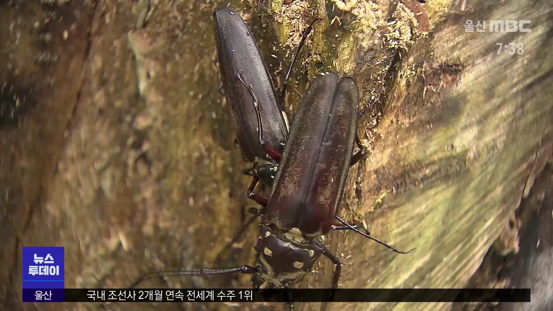 ◀ANC▶ 천연기념물이자 멸종위기 1급인 장수하늘소가 우화를 마치고 나무 구멍에서 나오는 모습이 처음으로 포착됐습니다. 암컷 장수하늘소가 야생에 알을 낳고 4년만에 성충이 되어 나온 건데.. 자연복원 가능성에 기대가 높아지고 있습니다. 강릉 조성식 기자가 취재했습니다. ◀END▶ ◀VCR▶ 직경 1미터가 넘는 아...