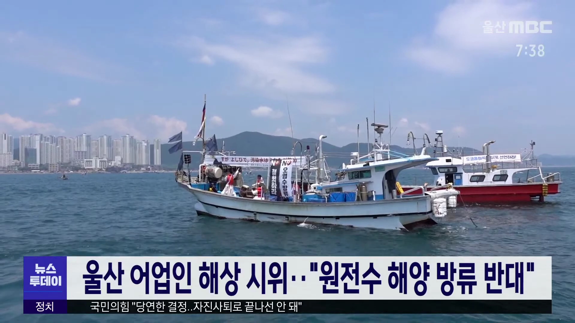 울산지역 어업인들이 오늘(6/27) 북구 해상에서 일본의 후쿠시마 원전수 해양 방류에 항의하는 시위를 벌였습니다. 이들은 삼중수소 등 고위험 방사성 물질이 포함된 오염수를 바다에 방류한다면 동해바다의 환경과 수산물 오염으로 심각한 피해가 발생할 거라고 밝혔습니다. 이들은 정부에 일본산 수산물 수입금지 등을 요...