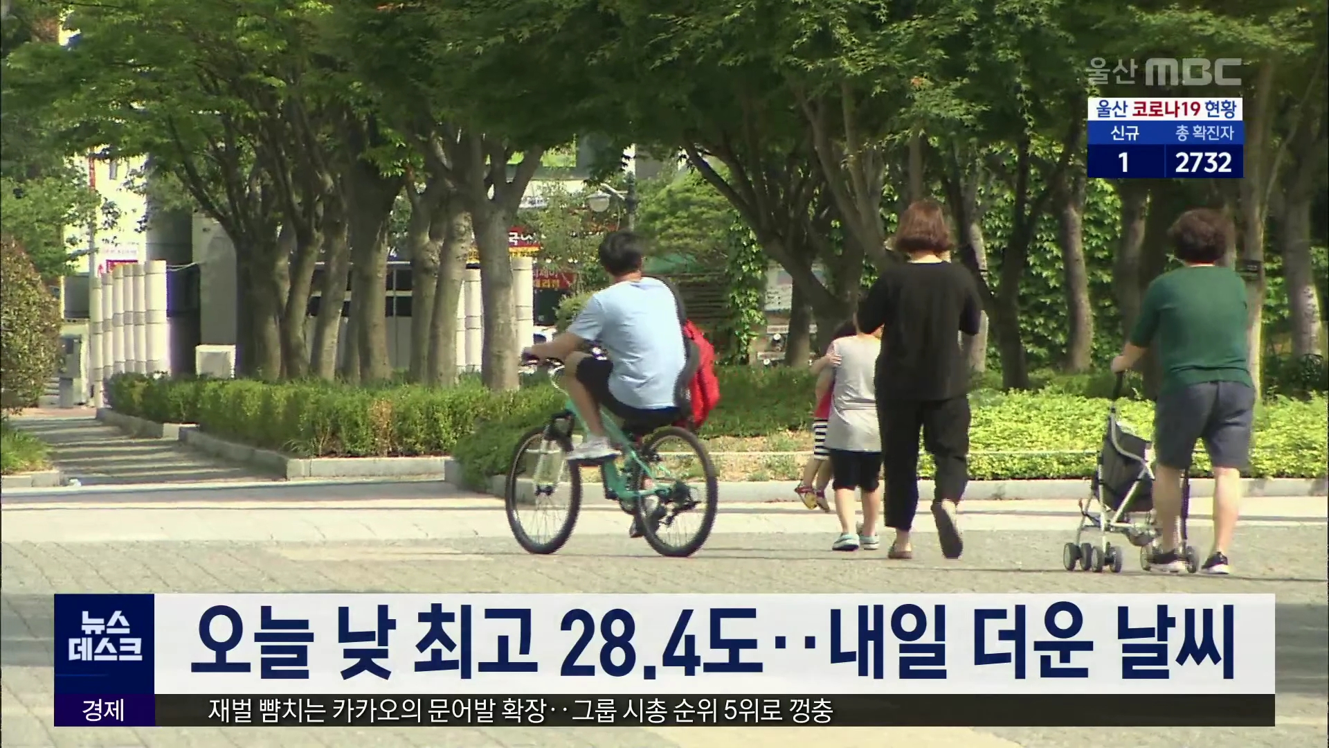 휴일인 오늘(6/20) 울산지역은 맑은 가운데 낮 최고 기온 28.4도를 기록했습니다. 내일은 대체로 맑은 가운데 아침 최저 19도에서 낮 최고 29도로 오늘과 비슷하게 덥겠습니다. 울산기상대는 모레까지 높은 물결이 해안가로 강하게 밀려올 것으로 보인다며 안전 사고에 유의할 것을 당부했습니다. //