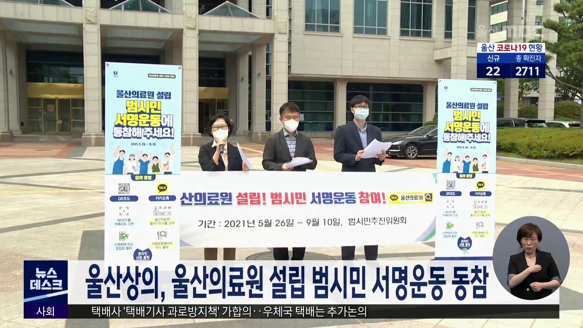 울산상공회의소가 울산의료원 설립 범시민 서명운동에 동참하기로 했습니다. 울산상의는 오는 9월10일까지 상의를 방문하는 기업체 직원과 시민들을 대상으로 오프라인 서명을 받는다고 밝혔습니다. 또 회원들을 상대로 문자 등을 보내 온라인 서명 운동도 함께 전개할 예정입니다.//