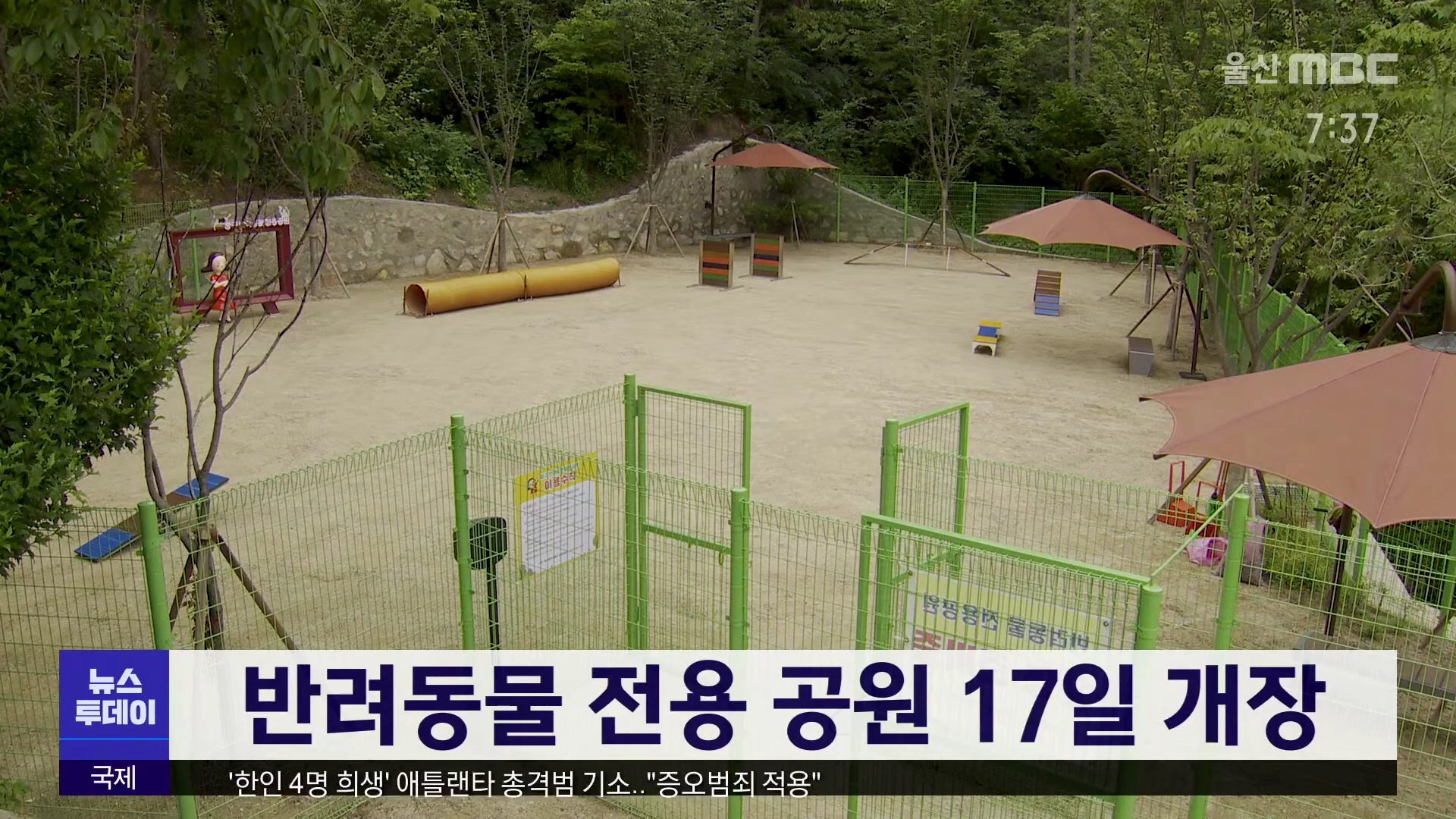 중구 성안동 함월 유아숲체험원 인근에 반려동물 전용 공원이 조성됐습니다. 반려견 놀이기구와 울타리, 그늘막 등 시설을 갖춘 이 공원에는 동물 등록을 마친 중·소형 반려견만 입장할 수 있습니다. 중구는 오는 17일부터 공원 운영이 시작되며 오전 10시부터 오후 6시까지 무료로 이용할 수 있다고 안내했습니다. //