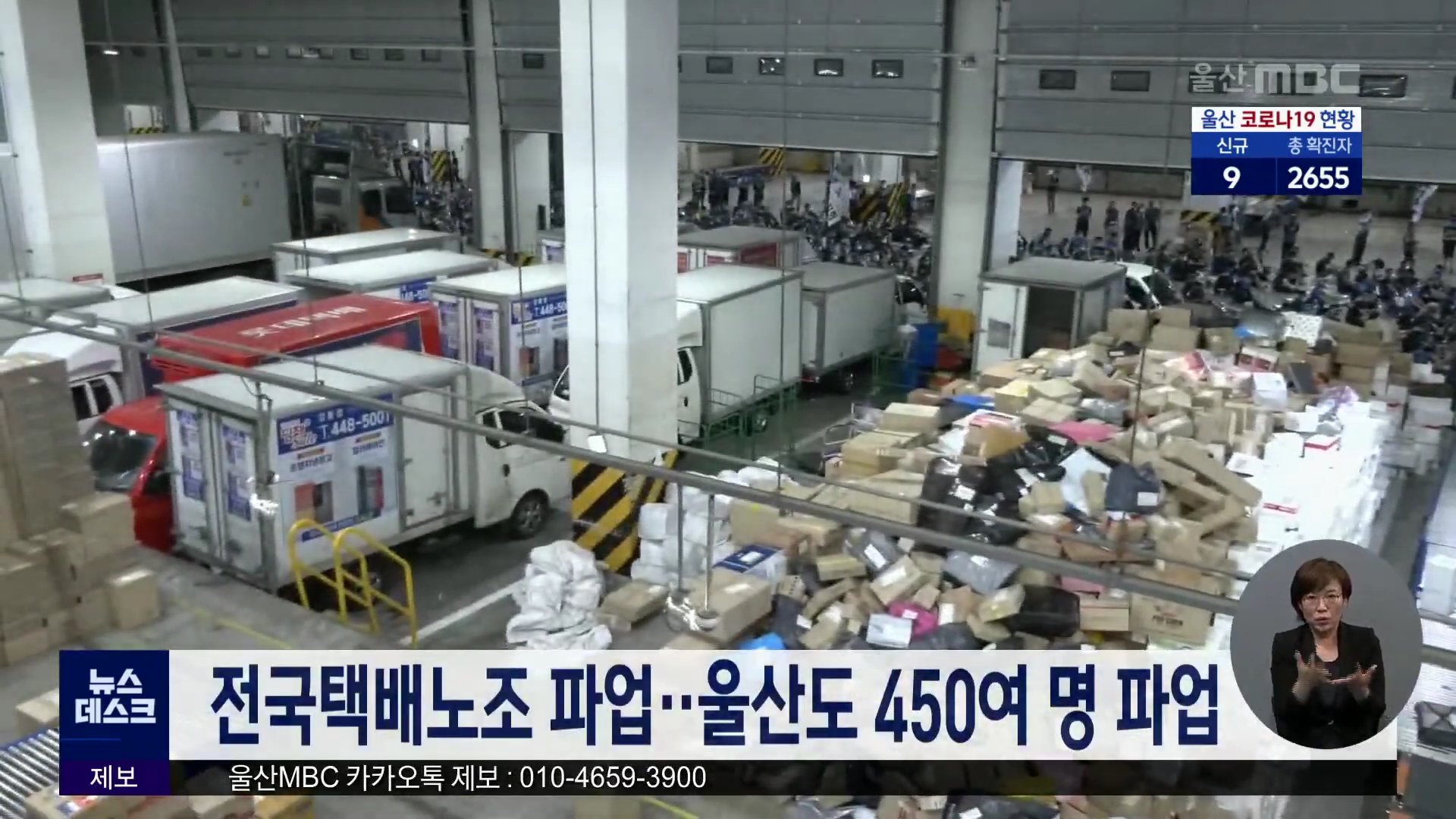 택배종사자 과로사 관련 사회적 합의 결렬로 전국택배노조가 파업에 돌입한 가운데 울산 지역 택배노조도 파업에 동참합니다. 전국택배노조 울산지부는 울산지역 전체 택배기사 1천100여명 가운데 450여명의 조합원이 오늘(6/9)부터 전면파업에 들어간다고 밝혔습니다. 한편 택배종사자 과로사 관련 사회적 합의는 국내 4개...