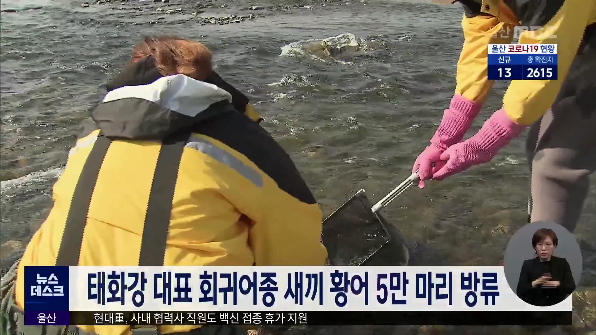 태화강 대표 회귀어종인 황어 치어 5만 마리가 태화강에 방류됐습니다. 구영교 일원에서 방류된 새끼 황어는 지난 3~4월 태화강으로 회귀한 어미 황어에게 알을 받아 부화시킨 개체들입니다. 황어는 연어, 은어와 함께 태화강의 대표 회귀어류로, 현재 울산시 보호야생생물로 지정됐습니다.