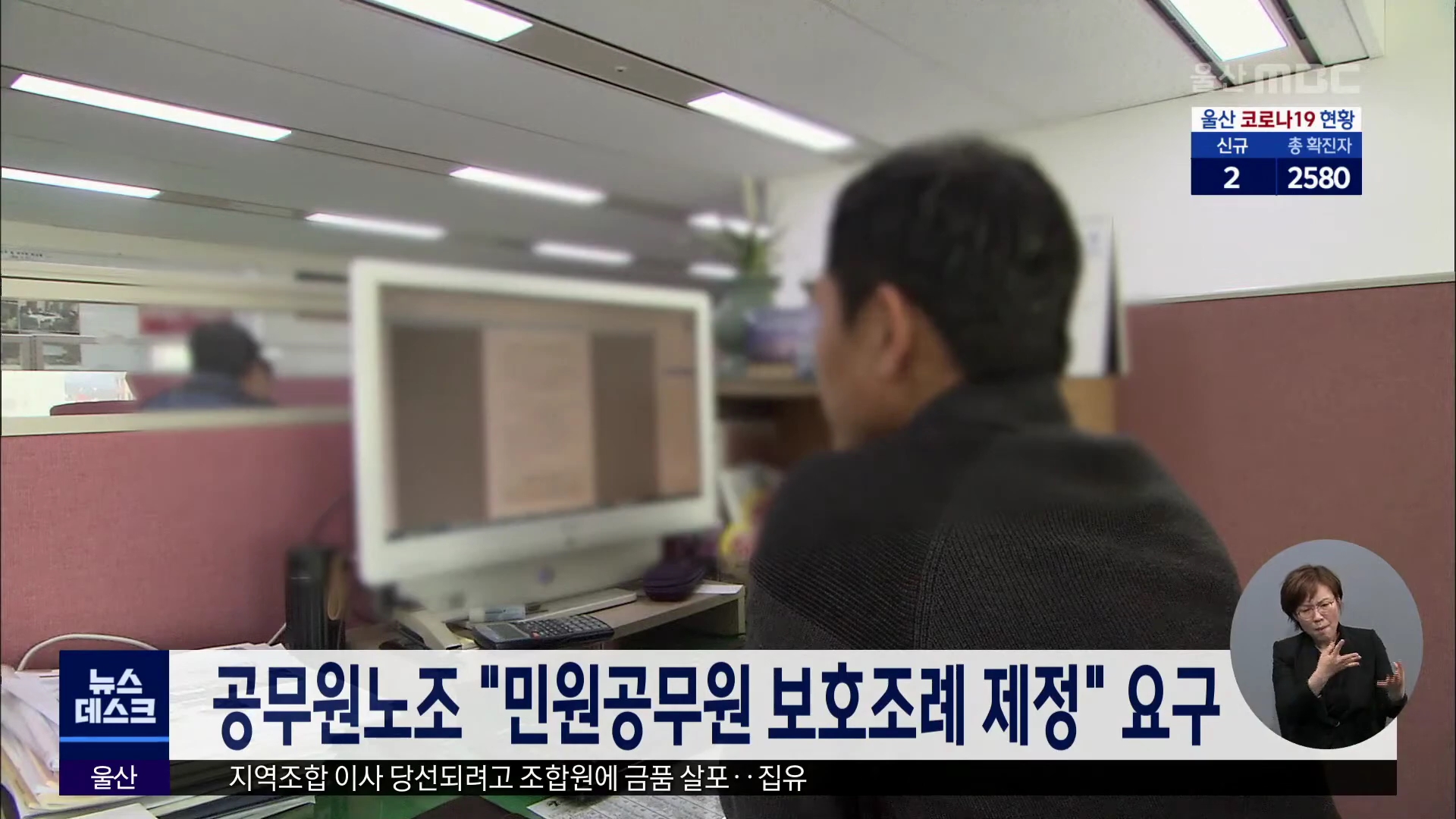 전국공무원노조 울산지역본부는 "울산시 5개 구·군은 '민원공무원 보호 조례'를 제정하라"고 주장했습니다. 노조는 "수많은 공무원이 악성 민원의 폭언과 폭력에 무방비로 노출돼 있지만, 노동법과 산업안전보건법의 사각지대에 놓여 있어 피해가 있더라도 법의 보호를 받을 방법이 없다"며 이같이 말했습니다. 노조는 민원...