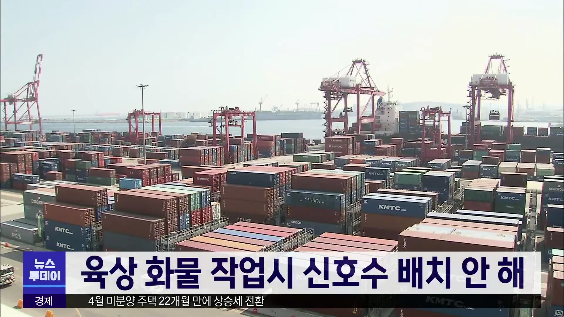 평택항 사고 등 안전 사고가 잇따르자 해양수산부가 울산항을 포함한 전국 5대 컨테이너 항만하역 사업장을 대상으로 현장 안전 실태 조사에 나섰습니다. 현재 울산항 내 5개 구역에는 위험을 알리거나 작업 반경 주위를 통제해 안전한 화물 운송을 돕는 신호수 150여 명이 배치돼 있는 것으로 나타났습니다. 울산항운노조...
