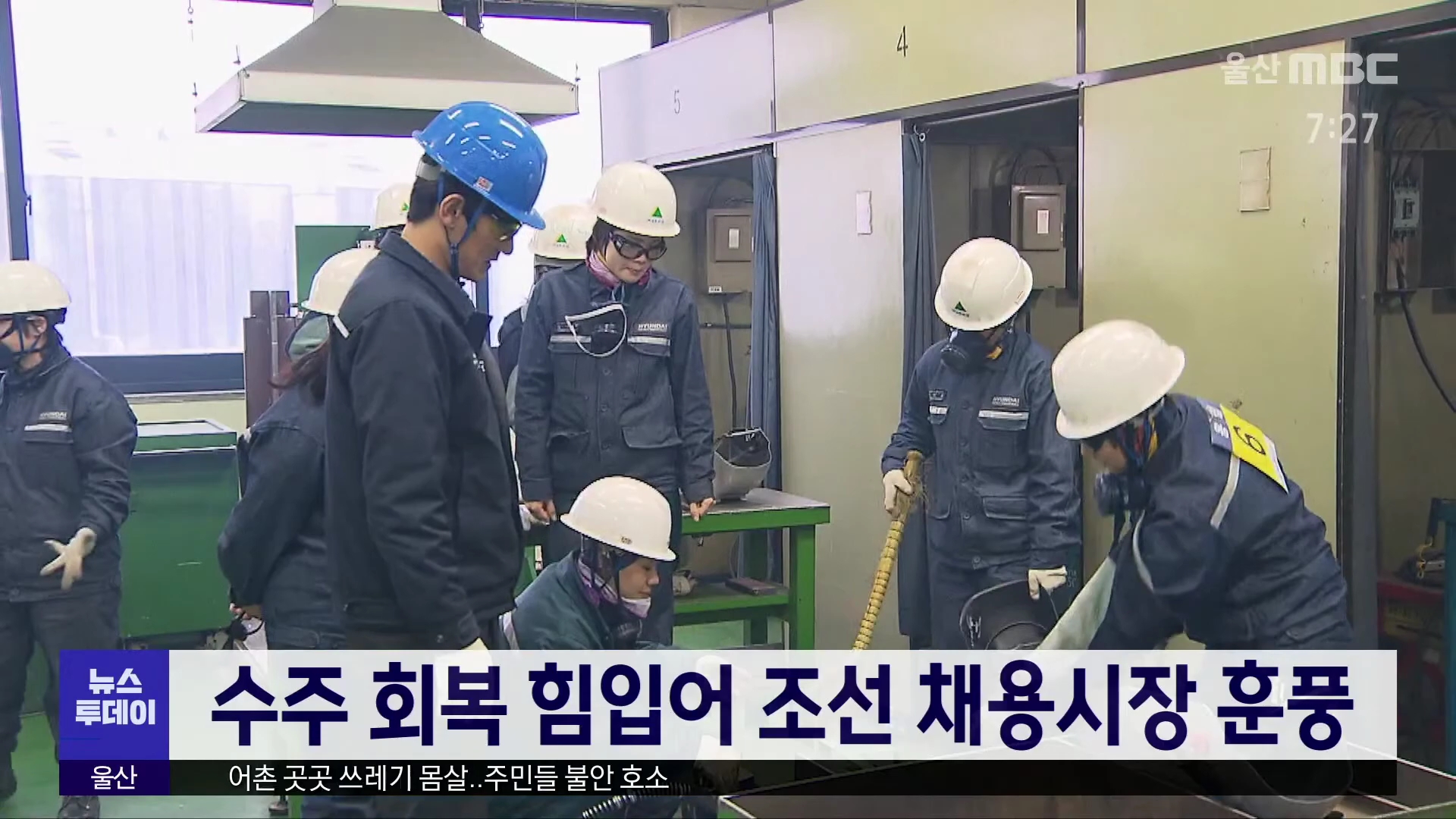 조선업계가 최근 신규 선박 수주 증가로 경기 회복세를 보이자 인력 채용에 적극 나서고 있습니다. 한국조선해양플랜트협회가 최근 개최한 채용 행사장에서는 현대중공업 8개 사내 협력사가 참여해 현장에서 200명 가까이 채용을 결정했습니다. 현대중공업도 1년 만에 기술연수생 모집을 공모했으며 하반기에도 추가 모집하...