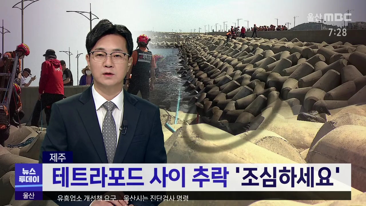 ◀ANC▶ 방파제 주변에서 낚시를 하거나 술을 마시다가, 테트라포드 사이로 추락하는 사고가 종종 발생하곤 하는데요. 사고의 80% 이상이 요즘 같은 봄철이나 여름철에 발생하고 있습니다. 각별한 주의가 필요하겠죠. 제주 김찬년 기자입니다. ◀END▶ ◀VCR▶ 해경과 소방대원들이 방파제 아래에서 구조작업을 벌입니...