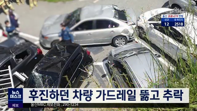 어제(5/22) 오후 2시쯤 울산 동구 서부동의 한 아파트 앞 도로에서 60대 남성 A씨가 몰던 승용차가 후진 중 가드레일을 뚫고 추락했습니다. 이 사고로 주차돼 있던 차량 2대가 파손됐지만 다행히 인명 피해는 없는 것으로 알려졌습니다. 경찰은 차량 블랙박스와 운전자의 진술 등을 토대로 사고 발생 경위를 조사하고 있습...