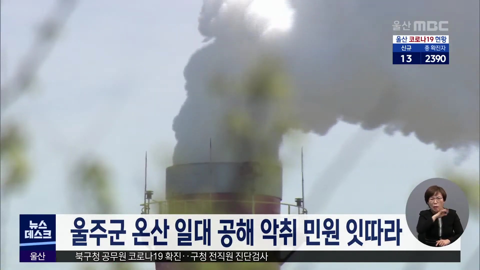 울주군 온산 일대에서 최근들어 심한 악취로 생활이 힘들다는 주민 민원이 잇따르고 있습니다. 일부 주민들은 썩은 계란 냄새와 같은 악취가 며칠동안 계속되고 있다며 고통을 호소하고 있습니다. 이에대해 울산시는 악취의 원인을 찾기 위해 조사를 벌이겠다고 밝혔습니다.