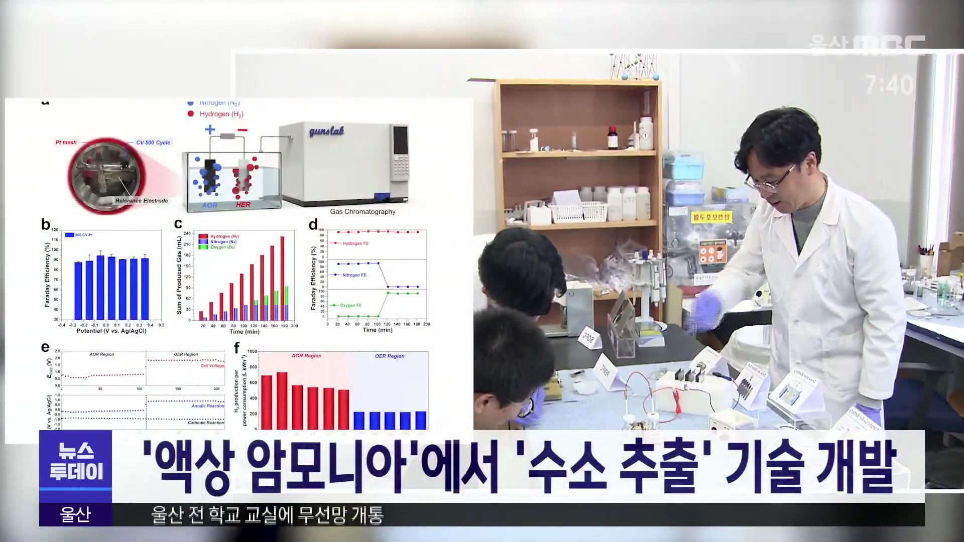 유니스트 에너지화학공학과 김건태 교수팀이 액상 암모니아를 전기로 분해해 순도 100%에 가까운 그린 수소를 대량 생산하는데 성공했습니다. 또 이 기술을 쓰면 물 전기분해로 수소를 만드는 것보다 소모 전력량이 3배나 적었다고 밝혔습니다. 수소로 암모니아를 합성하면 1.5배 많은 수소를 운반할 수 있는데 암모니아에...