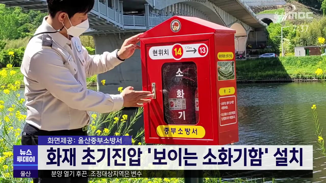 울산중부소방서는 태화강 국가정원 대나무숲 일대에 '보이는 소화기함' 5대를 추가로 설치했다고 밝혔습니다. '보이는 소화기함'은 불이 났을 때 이를 목격한 시민들이 초기 진압을 할 수 있도록 설치하는 것으로, 공원 관계자 등은 소화기 사용 방법을 교육받게 됩니다. //