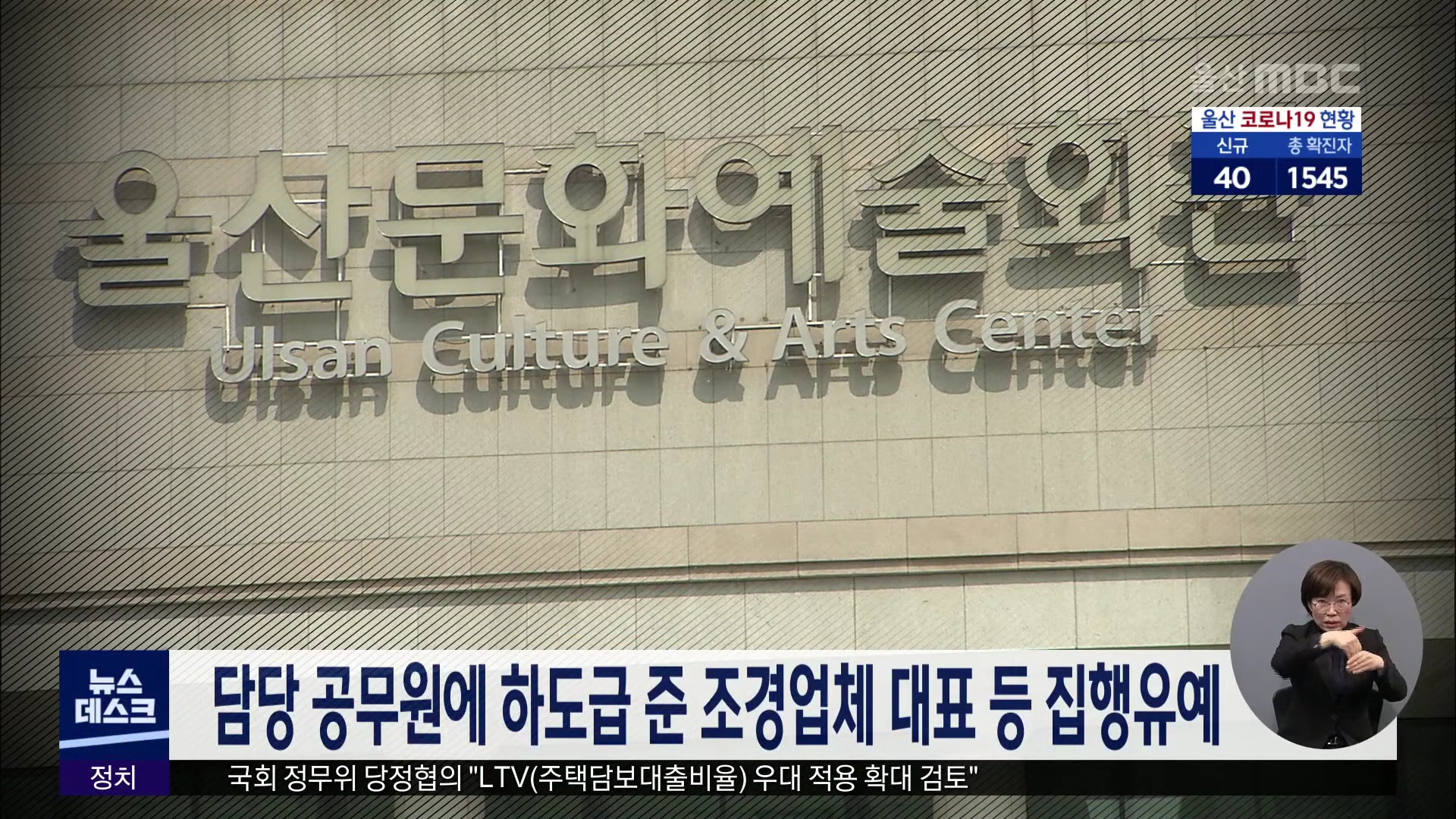 울산지법 형사11부 박현배 부장판사는 뇌물공여 혐의로 재판에 넘겨진 조경업체 대표이사 A씨에게 징역 6개월에 집행유예 1년, 다른 조업업체 운영자 B씨에게 징역 4개월에 집행유예 1년을 각각 선고했습니다. A씨는 지난 2016년 2월 울산문화예술회관 식재 관리 용역을 6천600만원에 낙찰받은 후 담당 공무원 C씨에게 감리...