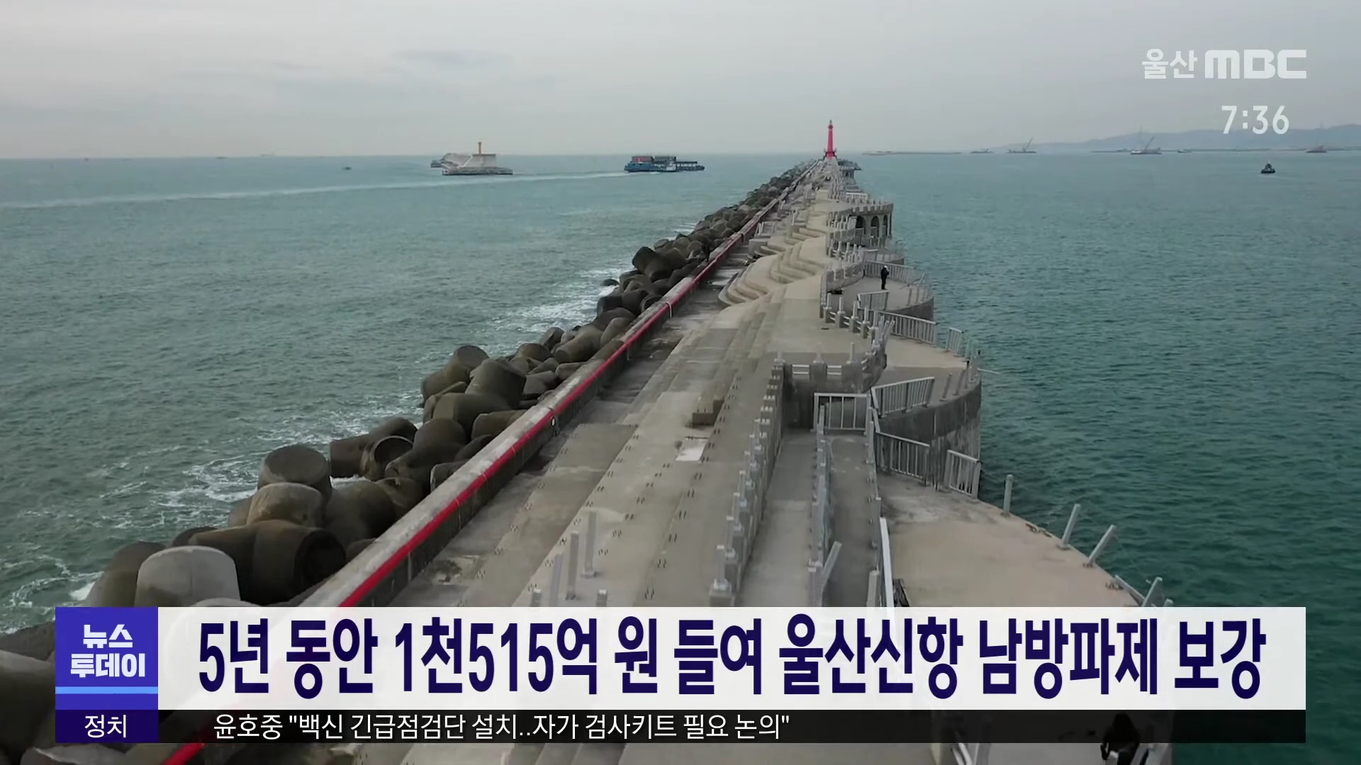울산지방해양수산청은 5년동안 1천 500여억원을 투입해 울산신항 남방파제 1천 100m 구간을 보강합니다. 이번에 보강공사에 들어가는 남방파제 1단계 구간은 지난 2009년에 준공된 이후 지구온난화로 인한 해수면 상승과 태풍 등으로 인해 안정성을 높여야한다는 지적을 받아왔습니다. 공사는 올해 8월 착공해 2026년 7월...