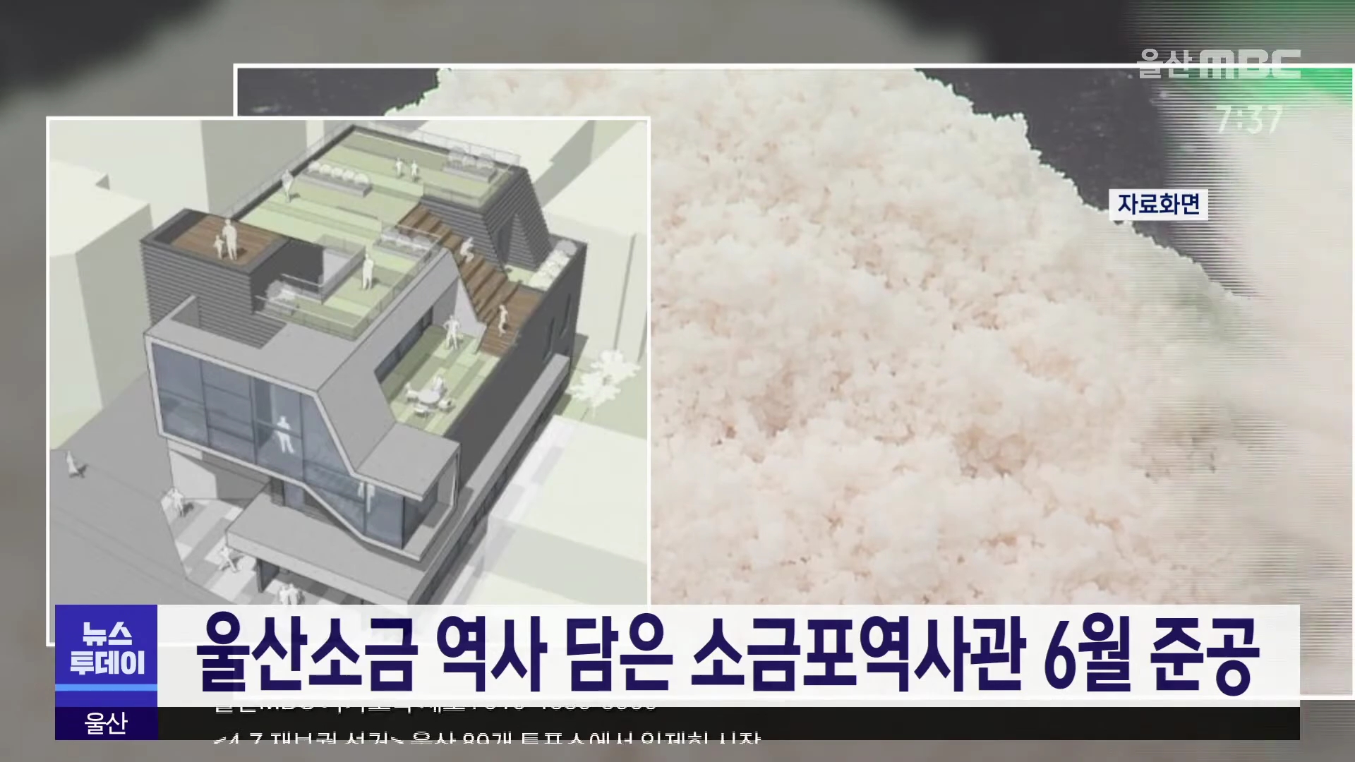 울산 소금 무역의 역사를 담은 소금포역사관이 오는 6월 준공될 예정입니다. 염포시장 인근에 지상 3층 규모로 건립중인 소금포역사관은 삼포개항지로 무역과 교류의 거점이었던 염포의 역사와 울산소금에 대한 전시관으로 구성될 예정입니다. 특히 소금배 모형을 설치해 과거 소금을 실어 나르던 모습을 체험할 수 있는 체...