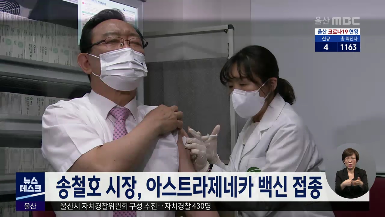 송철호 시장은 오늘(4/1) 백신 우려를 해소하고 시민 참여를 독려하기 위해 남구보건소에서 아스트라제네카 백신을 접종 받았습니다. 또 백신 접종이 시작되는 남구접종센터를 방문해 현장 점검을 벌였습니다. 송 시장은 "집단면역 조기 형성을 위해 시민들은 적극적으로 접종에 참여해 달라"고 당부했습니다.//