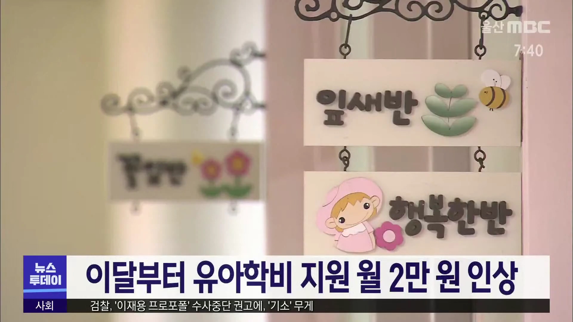 이달부터 유치원에 다니는 만 3살에서 5살 모든 유아에 대한 학비 지원이 2만원 인상됩니다. 울산시교육청은 유아 학비는 분기별로 지원하는데 인상분은 새학기 시작인 3월부터 적용돼 1,2월분에는 인상분이 반영되지 않았다고 밝혔습니다. 이에 따라 보호자 소득 수준에 상관없이 사립유치원 유아는 최대 33만원, 공립유치...