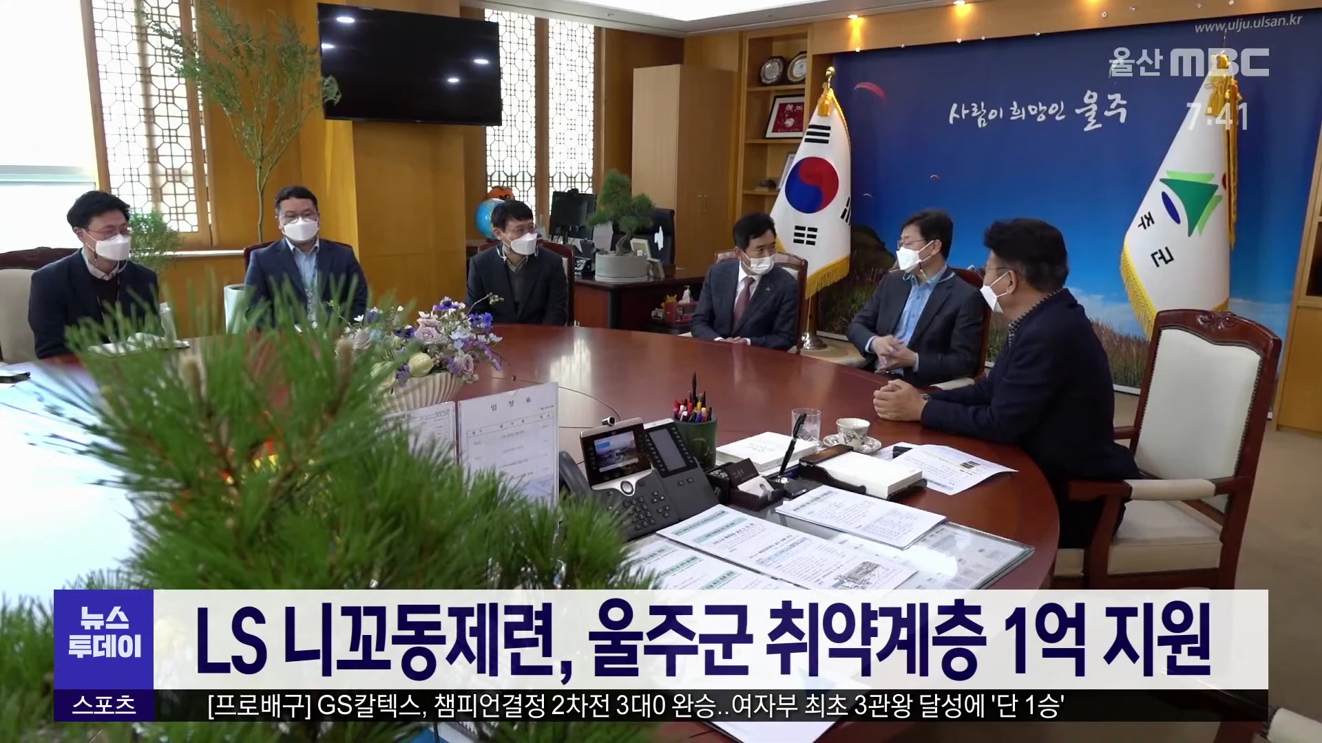 비철금속소재기업인 LS니꼬동제련이 사회적 취약계층을 위해 써달라며 울주군에 1억 원을 기탁했습니다. 이 성금은 울주군자원봉사센터와 울주푸드뱅크마켓 등 사회복지시설에 지정 기탁돼 코로나19 장기화로 어려움을 겪고 있는 장애인과 아동, 녹거노인 등 사회적 취약계층을 지원하는데 쓰일 계획입니다.