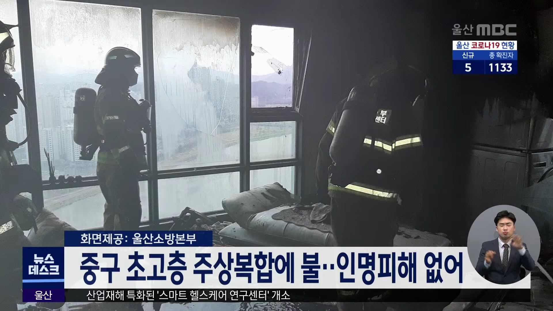 오늘(3/26) 오후 2시 30분쯤 중구 옥교동 태화강 엑소디움 36층에서 세탁기 합선으로 추정되는 불이 나 소방서 추산 1천800만 원의 재산피해를 내고 20여분만에 꺼졌습니다. 울산소방본부는 화재 당시 스프링클러가 작동했고, 인명 피해는 발생하지 않았다며 정확한 화재 원인과 피해 규모를 조사하고 있습니다.//
