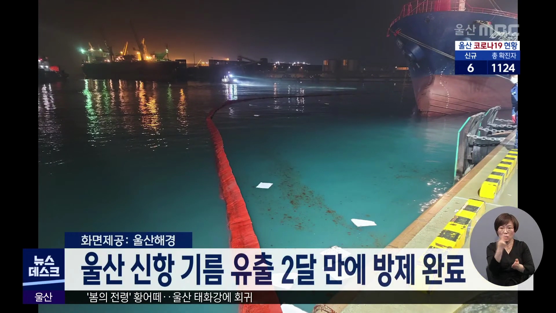 울산해양경찰서는 지난 1월 울산 신항에서 부산 선적 2천톤급 화학 운반선에서 잉크 원료로 사용하는 기름이 유출된 것과 관련한 수중 방제 작업이 두 달 만에 완료됐다고 밝혔습니다. 해경은 사고 즉시 오일 펜스를 설치한 뒤 유흡착재를 이용해 기름을 회수했지만 일부는 바닷물에 가라앉아 방제작업을 계속해 왔습니다.