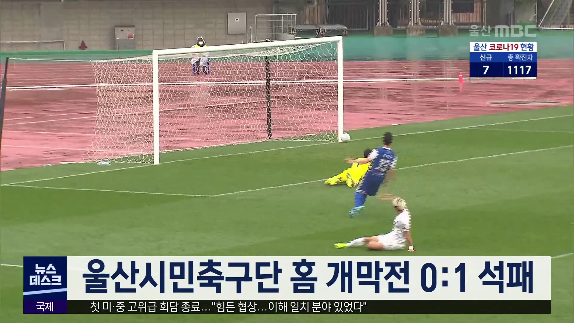 올해 K3리그로 승격한 울산시민축구단이 오늘(3/20) 열린 리그 홈 개막전 경기에서 부산교통공사에 0대 1로 아쉽게 패했습니다. 올 시즌 첫 유관중 경기로 치러진 이번 경기에서 울산시민축구단은 후반 70분 부산교통공사의 김희성 선수에게 한 골을 내 준 뒤 반격에 나섰지만 아쉽게 패했습니다. 울산시민축구단의 다음 홈...
