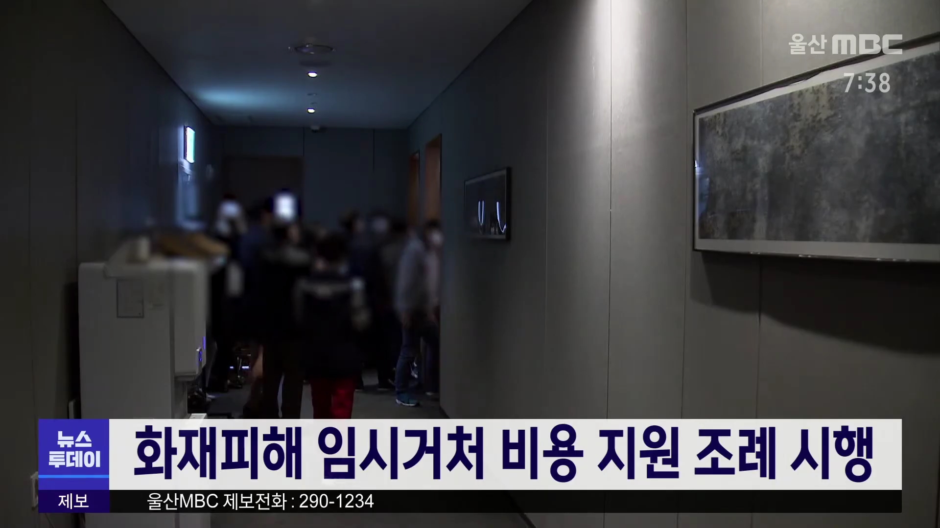 화재피해주민 임시 거처 비용 등 지원에 관한 조례가 오늘(3/18) 공포·시행됐습니다. 조례에는 화재 피해로 주거 시설에서 생활이 곤란할 경우 1일 숙박비 6만원을 최대 5일간 지원하는 내용이 담겨 있습니다. 또, 화재로 인해 정신적 충격이 클 경우 전문가 도움을 받을 수 있도록 지원하는 방안도 포함됐습니다. //