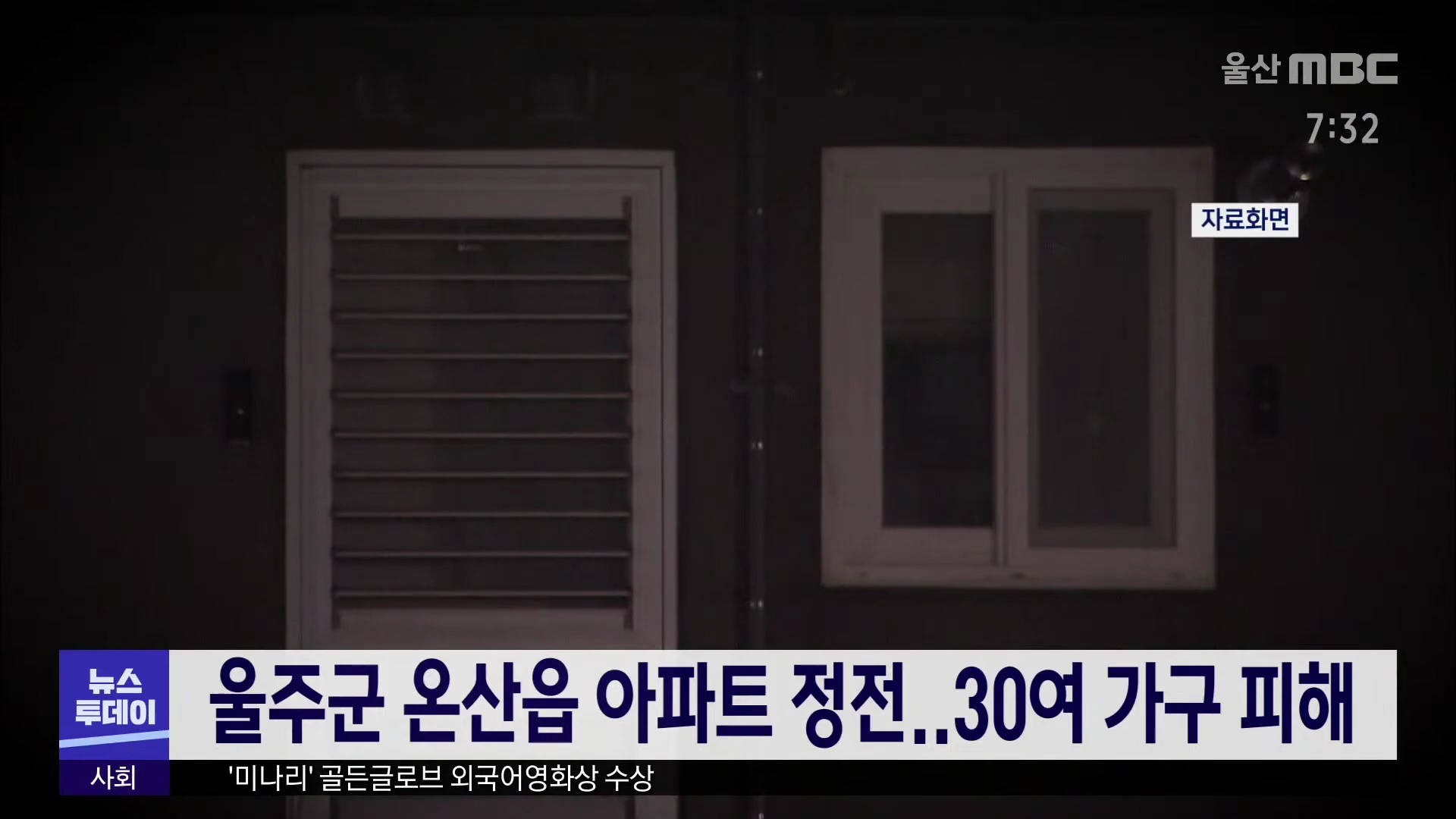 어젯밤(3/1) 9시쯤 울주군 온산읍의 한 아파트에 정전이 발생해 주민 30여 가구가 4시간가량 불편을 겪었습니다. 한국전력 측은 변압기에 문제가 생겨 전기 공급이 끊긴 것으로 보고 긴급 교체 작업을 실시했다고 밝혔습니다./