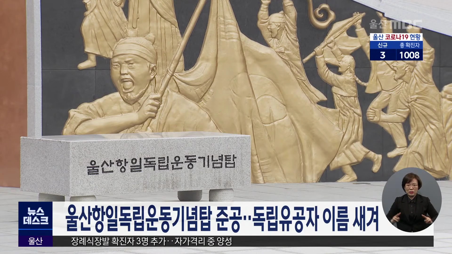 일제로부터 독립을 위해 희생하고 헌신한 순국선열과 애국지사를 기리기 위한 울산항일독립운동기념탑이 준공됐습니다. 기념탑 둘레에는 고헌 박상진 의사와 외솔 최현배 선생 등 서훈을 받은 울산 출신 항일 독립유공자 102명 이름이 새겨져 있습니다. 울산시는 기념탑 건립에 따라 올해 3·1절부터는 이곳에서 국가유공자 ...