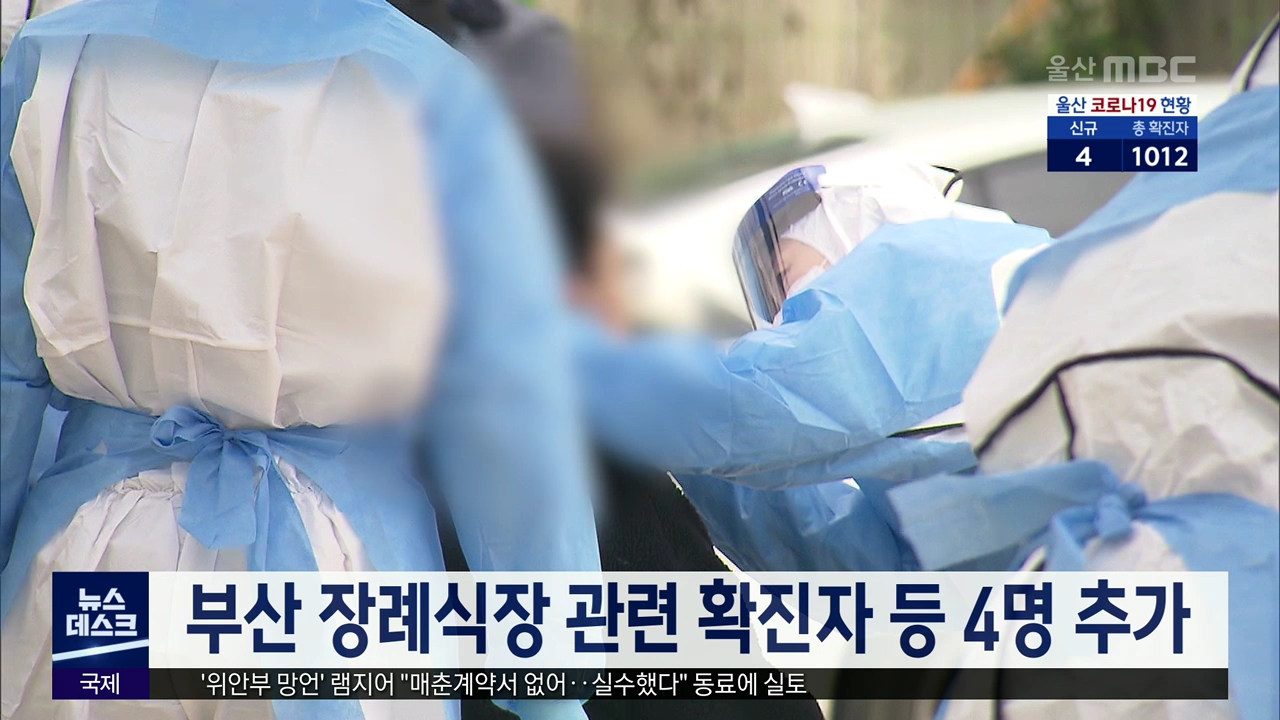 울산에서 장례식장 연쇄 감염 확진자 3명이 발생해 누적 1,008명이 됐습니다. 북구에 사는 50대는 978번 확진자의 직장 동료입니다. 10대 미만 어린이인 1007번과 1008번 확진자는 969번 확진자의 자녀입니다. 이들 모두 부산 장례식장 관련 간접 접촉자들이며 자가격리 중 양성 판정을 받았습니다.