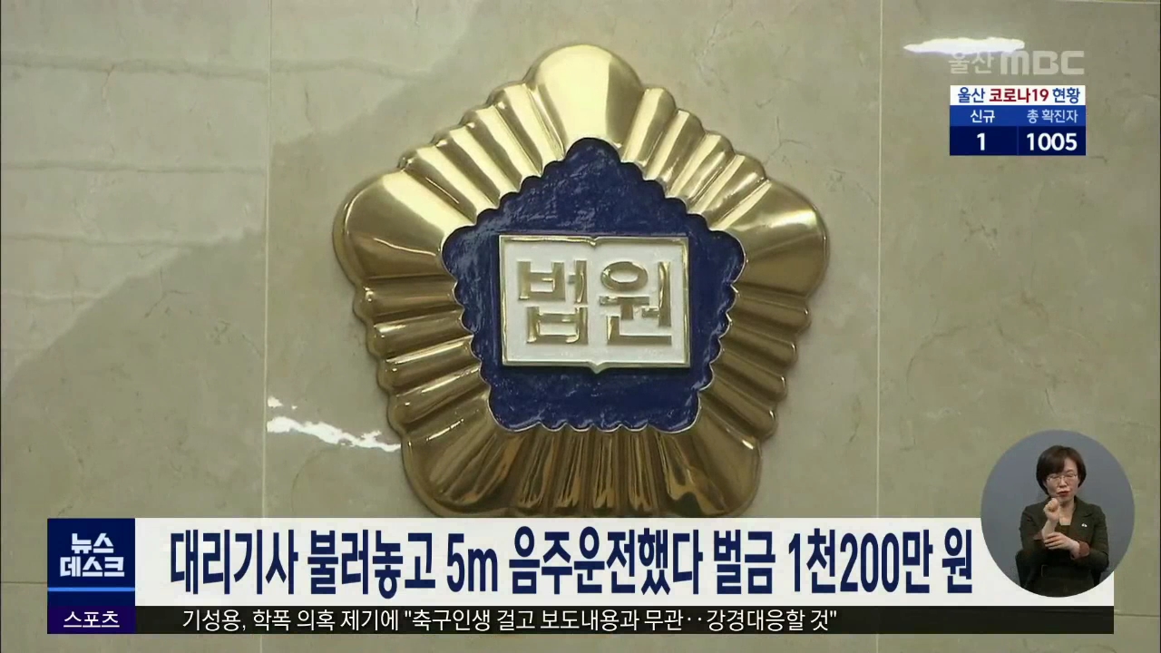 대리운전 기사를 불러놓고도 5m 정도 음주운전을 한 50대가 벌금 1천200만 원을 선고받았습니다. 울산지법 형사4단독 김정석 부장판사는 도로교통법 위반 혐의로 재판에 넘겨진 A씨에게 벌금 1천200만 원을 선고했습니다. A씨는 지난해 7월 밤 부산에서 지인과 술을 마신 후 대리운전 기사를 불러 운전을 맡기는 과정에서 ...
