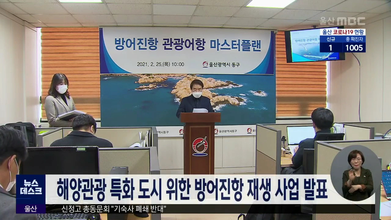 동구가 오늘(2/25) 기자회견을 열고 해양관광 특화 도시로 만들기 위한 방어진항 재생 프로젝트를 발표했습니다. 동구는 5년동안 16개 사업에 약 90억 원을 투입해 중앙광장과 전망대, 야시장 등을 개설하고 민간 숙박시설을 유치하겠다는 계획입니다. 또한 방어진항 개발을 통해 대표 관광지인 대왕암공원과 슬도를 연계해...