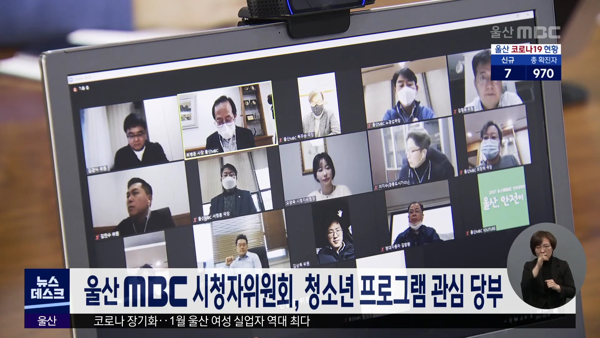 울산MBC 2월 시청자위원회가 코로나19 사회적 거리두기를 감안해 오늘(2/16) 비대면 화상회의로 열렸습니다. 위원회는 울산MBC가 울산 시민의 입장에서 뉴스와 각종 프로그램을 통해 심층적이고 다양한 감동을 줬다고 평가하면서 미래의 주역인 청소년 관련 프로그램에도 관심을 기울여 달라고 당부했습니다.