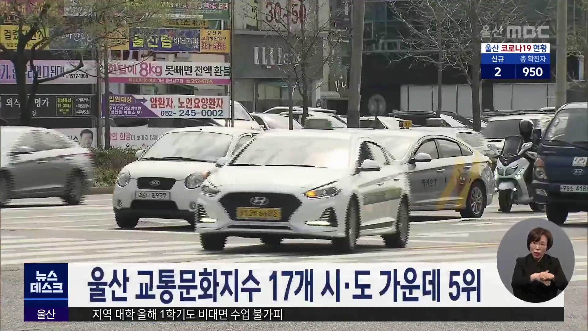 17개 시·도별로 평가하는 2020년 교통문화지수 실태조사 결과 울산은 5위를 차지했습니다. 한국교통안전공단 울산본부는 울산시가 2019년 79.29점에서 지난해에는 1.79점 상승한 81.05점을 기록했다고 밝혔습니다. 평가 항목 중 운전 중 스마트기기 사용빈도는 16위로 전년 대비 9단계 하락했고 횡단보도 횡단 중 스마트기...