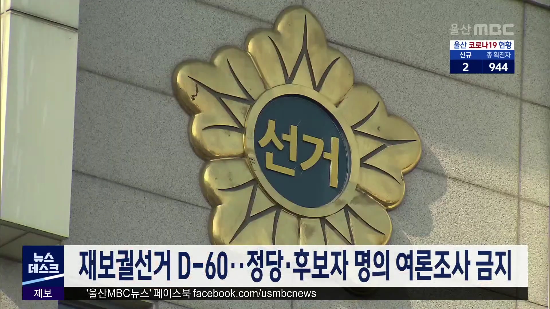4.7 재보궐선거가 오늘(2/6)로 60일 남으면서, 오늘(2/6)부터는 정당이나 후보자 명의로 여론조사를 할 수 없게 됩니다. 울산시선거관리위원회는 정당이나 후보가 여론조사를 빌미로 인지도를 높이려는 것을 막기 위해 정당이나 후보자 등의 이름을 밝히면서 선거에 관해 여론조사를 하는 것을 금지한다고 밝혔습니다. 또 ...