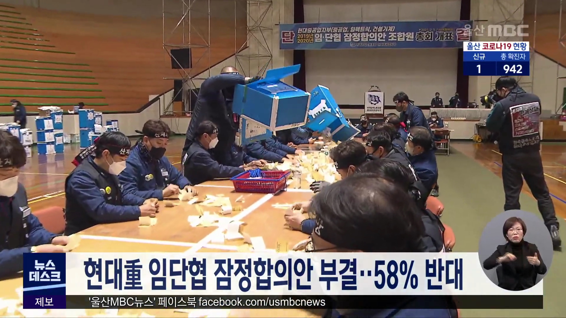현대중공업 노사가 마련한 2019년과 2020년도 임단협 잠정합의안이 조합원 찬반투표에서 부결됐습니다. 오늘(2/5) 실시된 투표 결과 현대중공업 노조원의 58% 이상이 반대표를 던진 것으로 집계됐습니다. 이에 따라 노사는 임단협 교섭을 다시 벌여야 하게 돼, 설 연휴 전 타결은 사실상 불가능해졌습니다. 한편 오늘(2/5) ...
