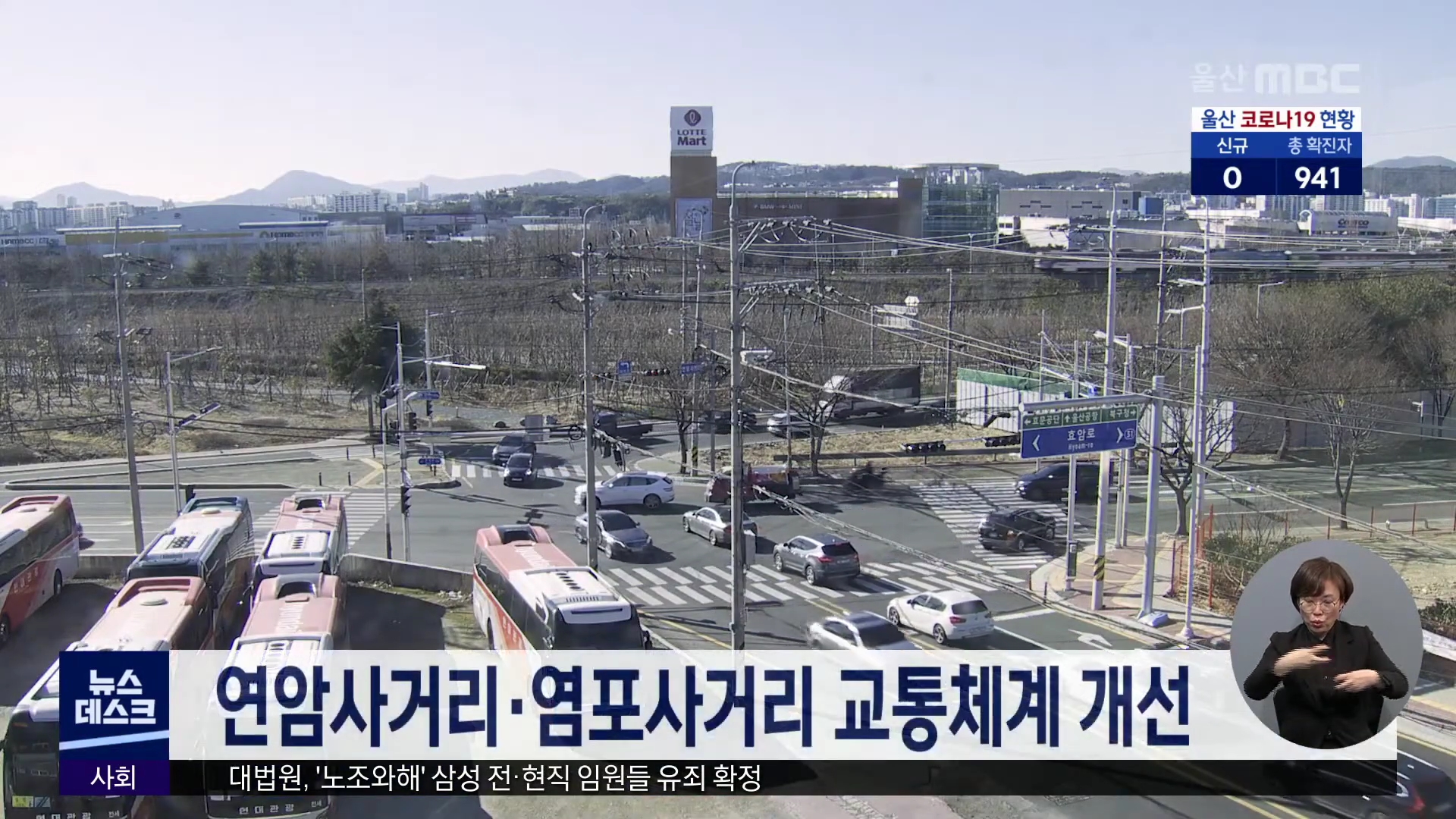 북구 연암사거리와 염포삼거리에 대한 교통체계 개선 사업이 오는 5월까지 실시됩니다. 연암사거리는 상습 정체와 교통사고 위험을 줄이기 위해 교통섬을 정비하고 도로를 포장하며, 염포삼거리에는 성내마을 주민들의 원활한 시내 진입을 위해 신호등 체계를 개선하고, 미끄럼 방지 포장 등도 진행됩니다.//