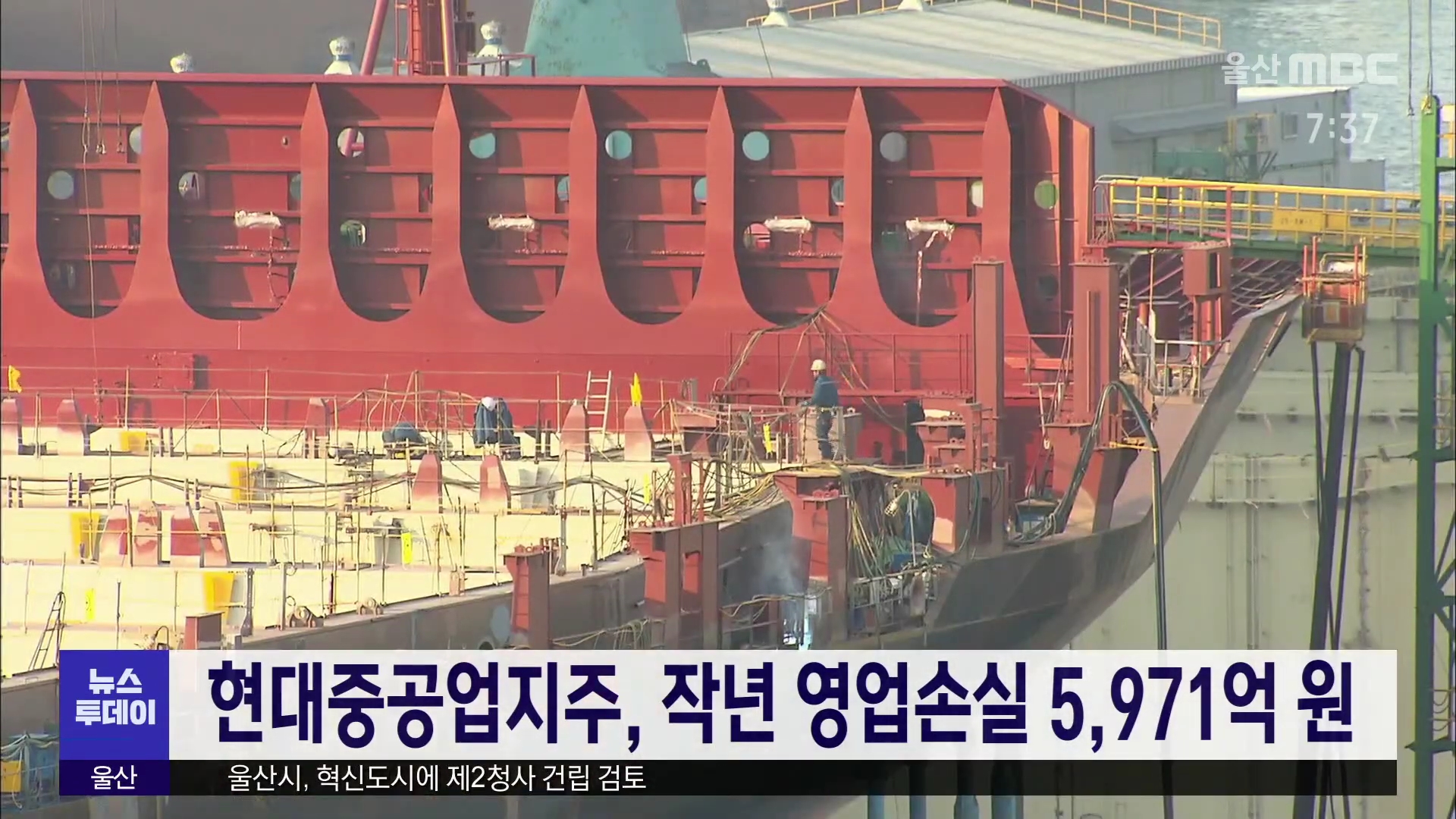 현대중공업지주는 지난해 5천971억원의 영업손실을 기록해 적자로 전환됐다고 오늘(2/4) 공시했습니다. 매출액은 18조9천109억원으로 전년보다 29.0% 감소했고 당기순손실은 7천897억원으로 적자 전환됐습니다. 현대중공업지주는 "연결 자회사의 경영환경 악화에 따라 매출과 영업이익이 감소했다"고 밝혔습니다.