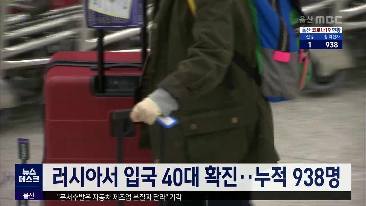 러시아에서 입국한 40대 남성이 코로나19에 확진돼 울산지역 누적 확진환자가 938명을 늘었습니다. 이 남성은 지난 29일 러시아에서 입국한 뒤 자가격리 중 확진 판정을 받아 이동 동선은 없는 것으로 확인됐습니다. //