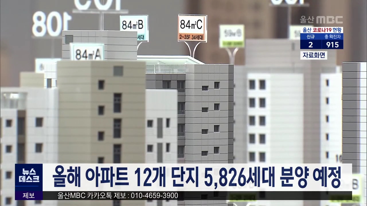 올해 민간 아파트 분양 세대수가 지난해와 비슷한 수준이 될 전망입니다. 울산시는 오는 3월 울주군 청량읍 719세대 아파트 분양을 시작으로 모두 12개 단지 5천826세대 분양이 이뤄질 것으로 내다봤습니다. 시는 당초 올해 8천9백여 세대의 분양을 예상했지만, 사업 승인 지연 등으로 올 하반기 분양이 힘든 물량이 늘어나...