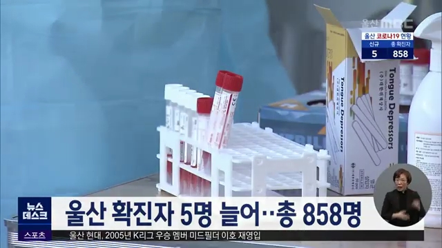 울산 확진자 5명 늘어..총 858명
